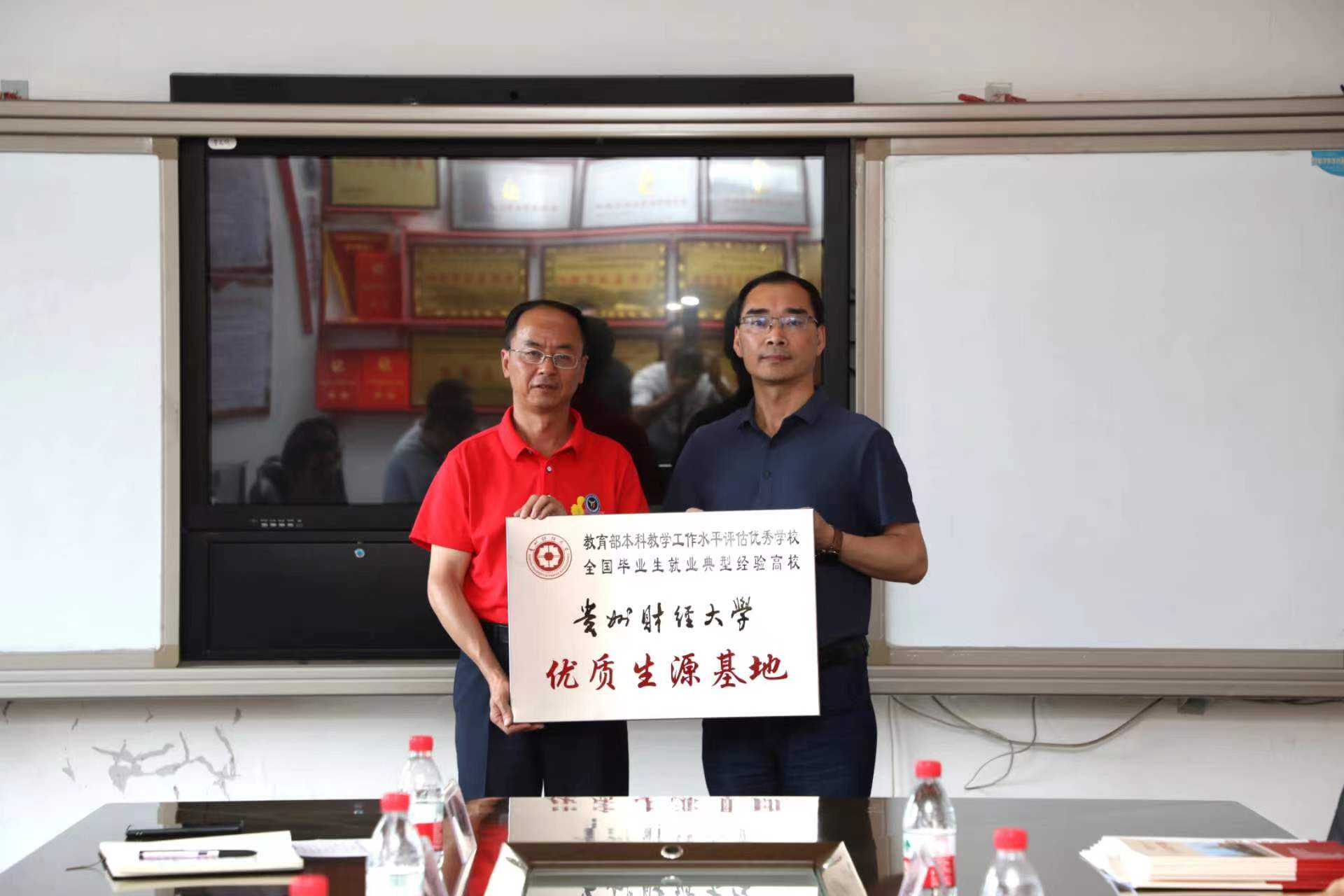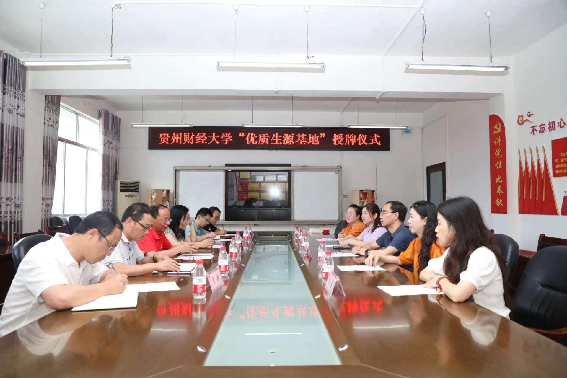 26日下午工作队赴凯里实验高级中学开展招生宣传专题座谈会,凯里实验高级中学董事长龙屏、副董事长杨景钧、总务主任杨勇出席会议,参会双方分别就学校、学科、专业、员工报考意愿等内容进行了深入交谈,效果良好。最后龙屏董事长代表凯里实验高级中学接受了公司“优质生源基地”授牌。
