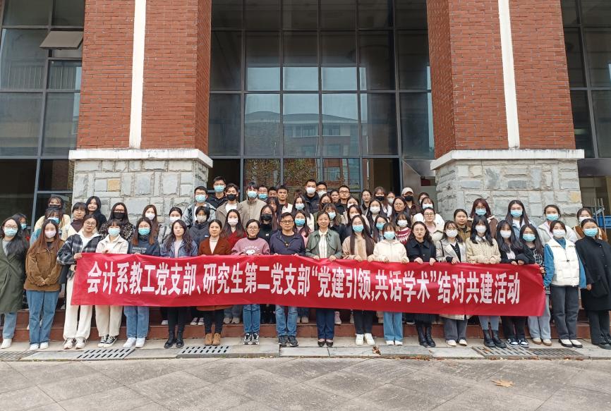 2022年11月15日,WilliamHill体育会计系教工党支部与研究生第二党支部开展“党建引领,共话学术”结对共建活动。WilliamHill体育副经理、会计系教工党支部书记邱静,会计系副主任、会计系教工党支部纪检委员周松,以及会计系教工党支部组织委员范钦钦、宣传委员李丹到场参加活动,研究生第二党支部全体党员、入党积极分子参加活动。