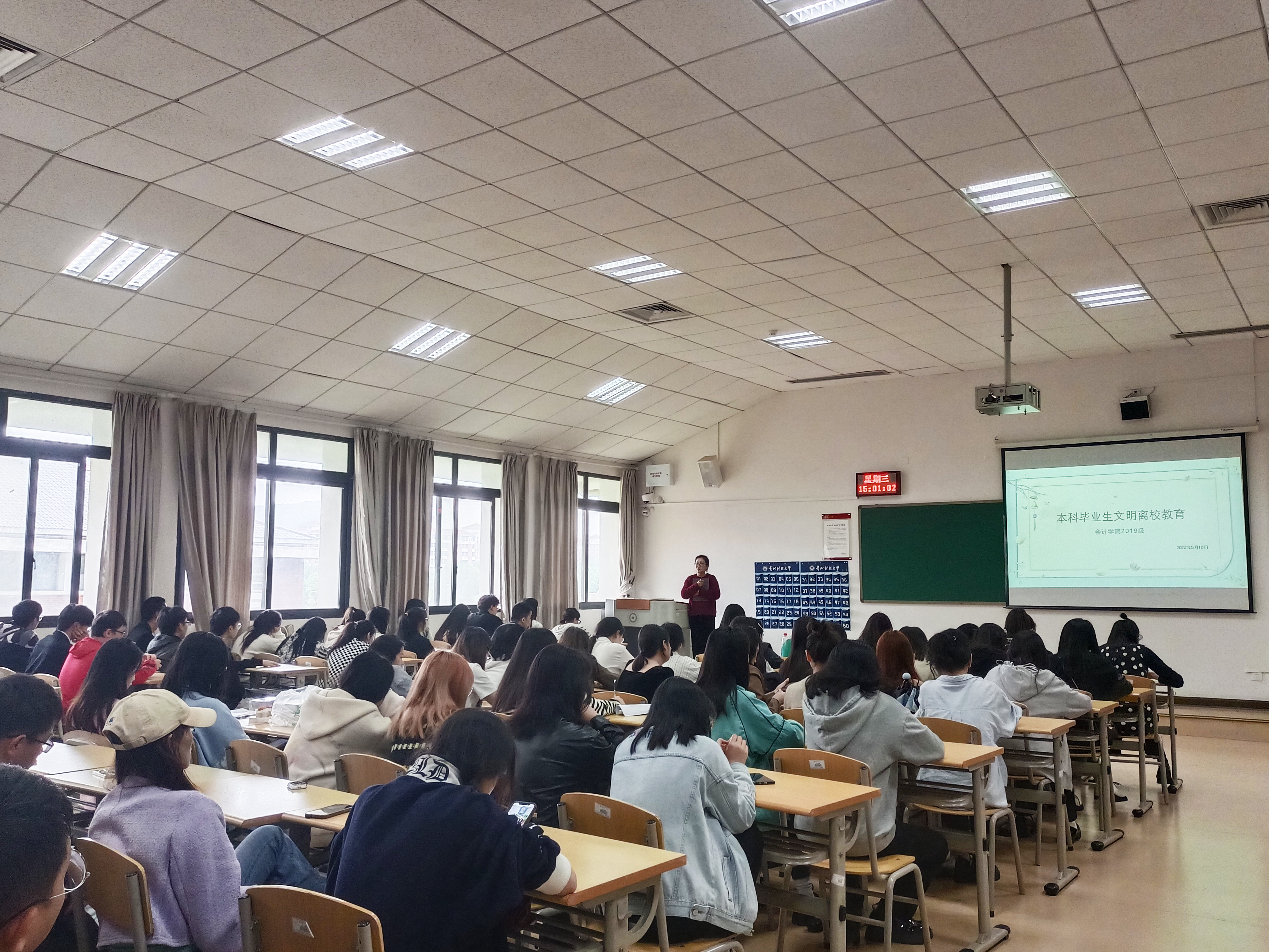 5月10日,WilliamHill体育在崇德楼512教室举行2019级本科生文明离校教育,学院共计276名本科毕业生到场参加,辅导员蒲亚晴担任主讲人。