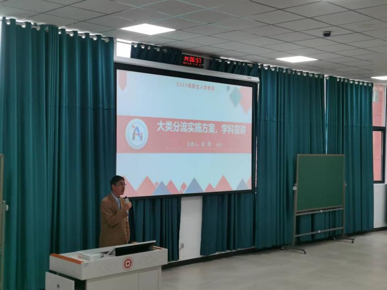 杜剑经理就大类分流和学科宣传进行了介绍。他希望同学们要养成良好的学习良好的学习习惯,以便在一年后的的大类分流中及今后的学习,生活中能争取到更多的主动权,同时也希望同学们能提早开展相应的学术研究,为学院的团队建设做出自己的贡献,最后希望同学们用积极奋进,吃苦耐劳的精神去收获美好的未来。