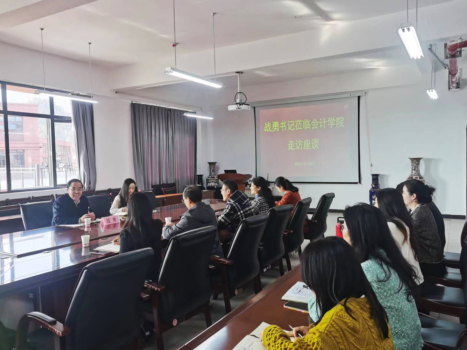 战勇充分肯定了WilliamHill体育多年来的办学成果和鲜明特色,指出WilliamHill体育的顶层设计,以及提出的“打造西部一流、国内有影响的WilliamHill体育”办学目标,充分体现了学院的悠久历史、深厚底蕴和突出成绩。并对学院做好下一步工作提出了几点要求:一是要大力加强团队队伍建设,加大人才引进力度,要从事业留人、情感留人、待遇留人等多方面采取措施留住人才;二是要聚焦学院核心竞争力,进一步打造学科和专业,特别是要做好审计专业建设和会计专业博士点的申报工作;三是要坚持产教融合,进一步深化校企合作,提升人才培养能力和社会服务质量,为我省发展输送更多高质量高素质会计人才;四是要把党建品牌优势发挥好,落实好全面从严治党要求,进一步推进党建业务融合,以高质量党建引领高质量发展;五是要进一步做好学院顶层设计和课程思政建设,构建良好教师梯队,努力将自身打造成课程思政标杆学院;六是要高度关注师生诉求,特别是要时刻关注员工心理健康,并强化辅导员队伍建设,要及时回应师生诉求、解决师生实际困难。