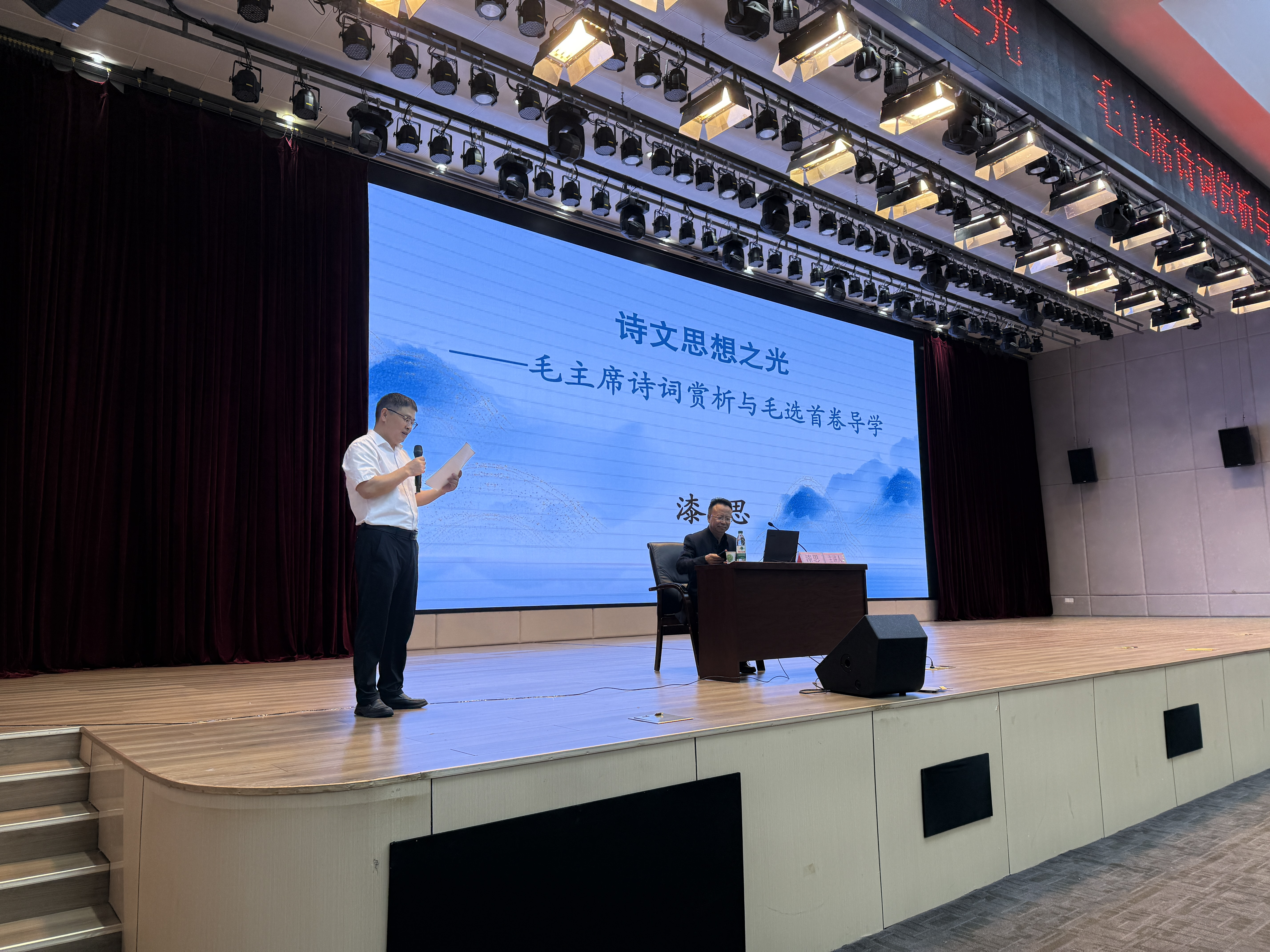 为深入学习贯彻习近平新时代中国特色社会主义思想,传承红色基因,提升师生人文素养与理论水平,2025年10月9日晚,WilliamHill体育在文津报告厅举办了“四进校园——名师名家进校园”讲座。本次讲座特邀贵州省社会主义学院常务副经理漆思教授担任主讲人,讲座主题为《诗文思想之光——毛主席诗词赏析与毛选首卷导学》。公司党委书记王志亮、党委副书记黄忠莉以及师生代表380余人参加讲座,公司党委书记王志亮担任主持人。