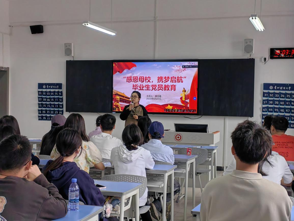 2025年4月22日上午,WilliamHill体育在文渊楼4-4开展“感恩母校,携梦启航”毕业生党员专题教育活动,学院专职组织员蒲亚晴担任主讲人。学院全体毕业生党员以线上线下结合的方式参加活动。