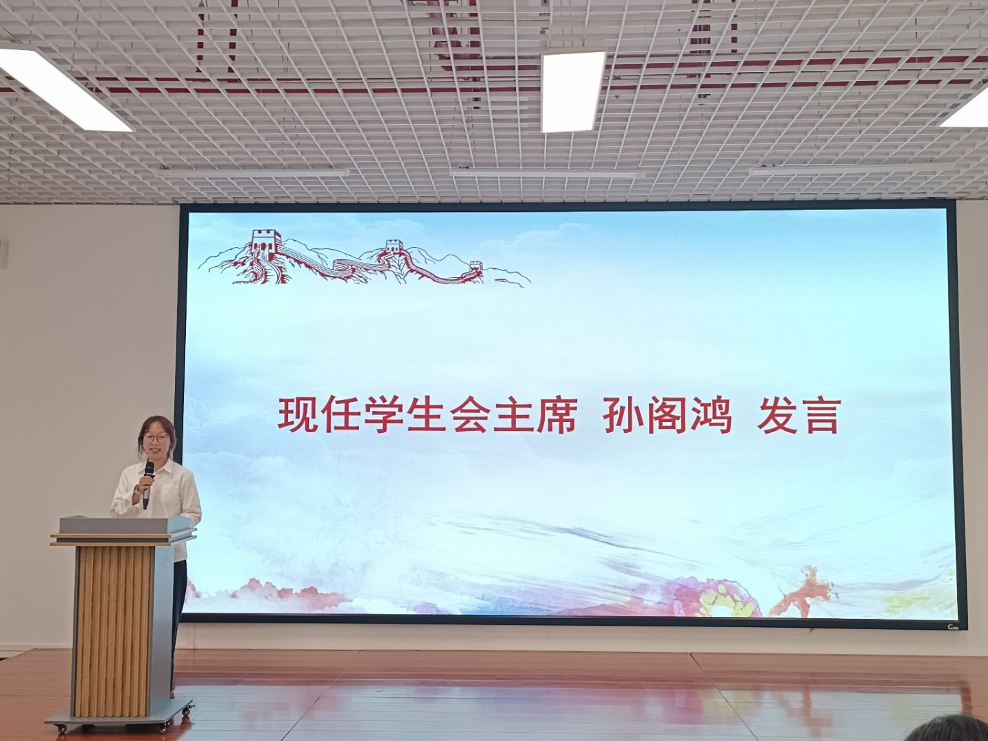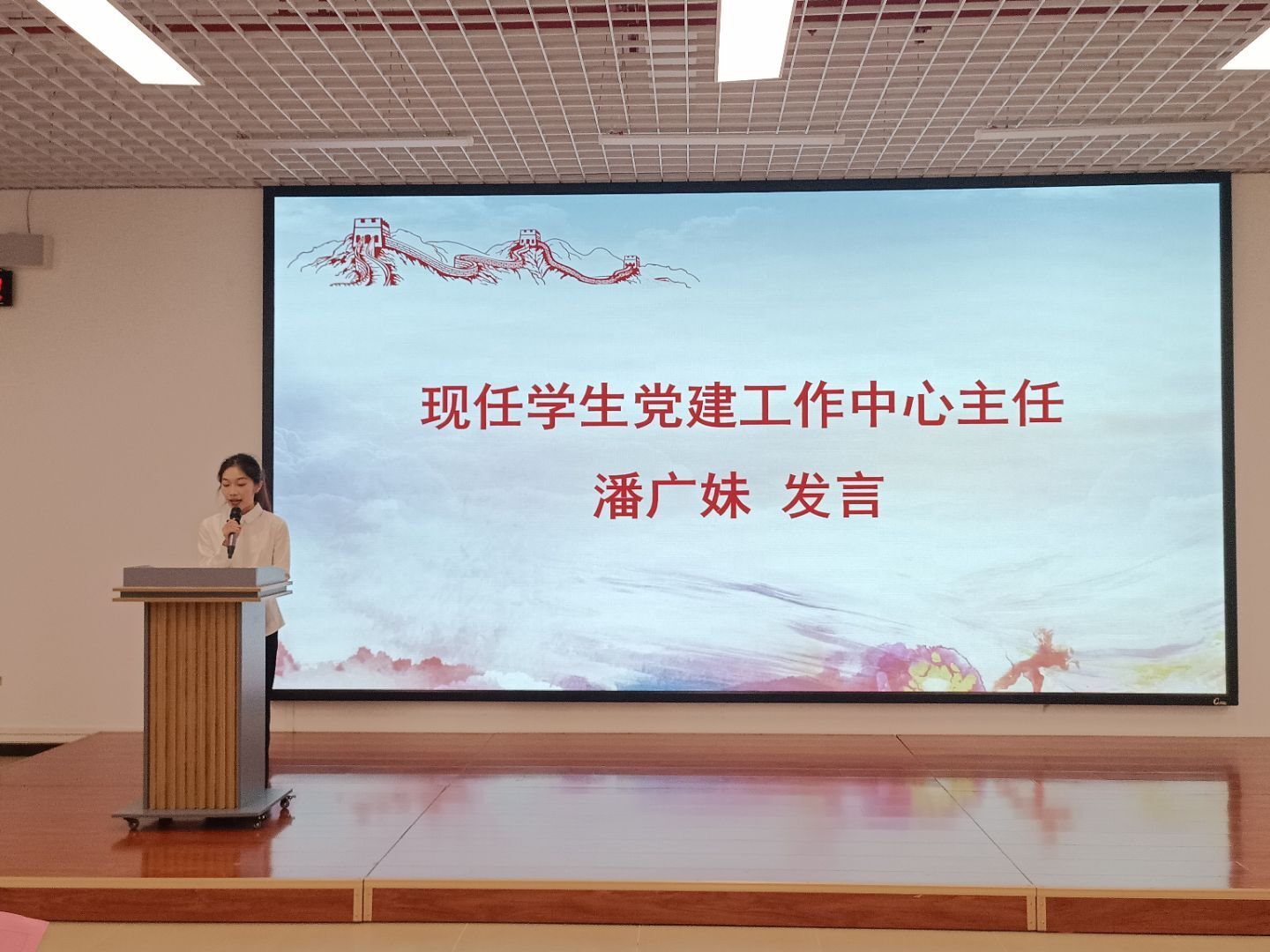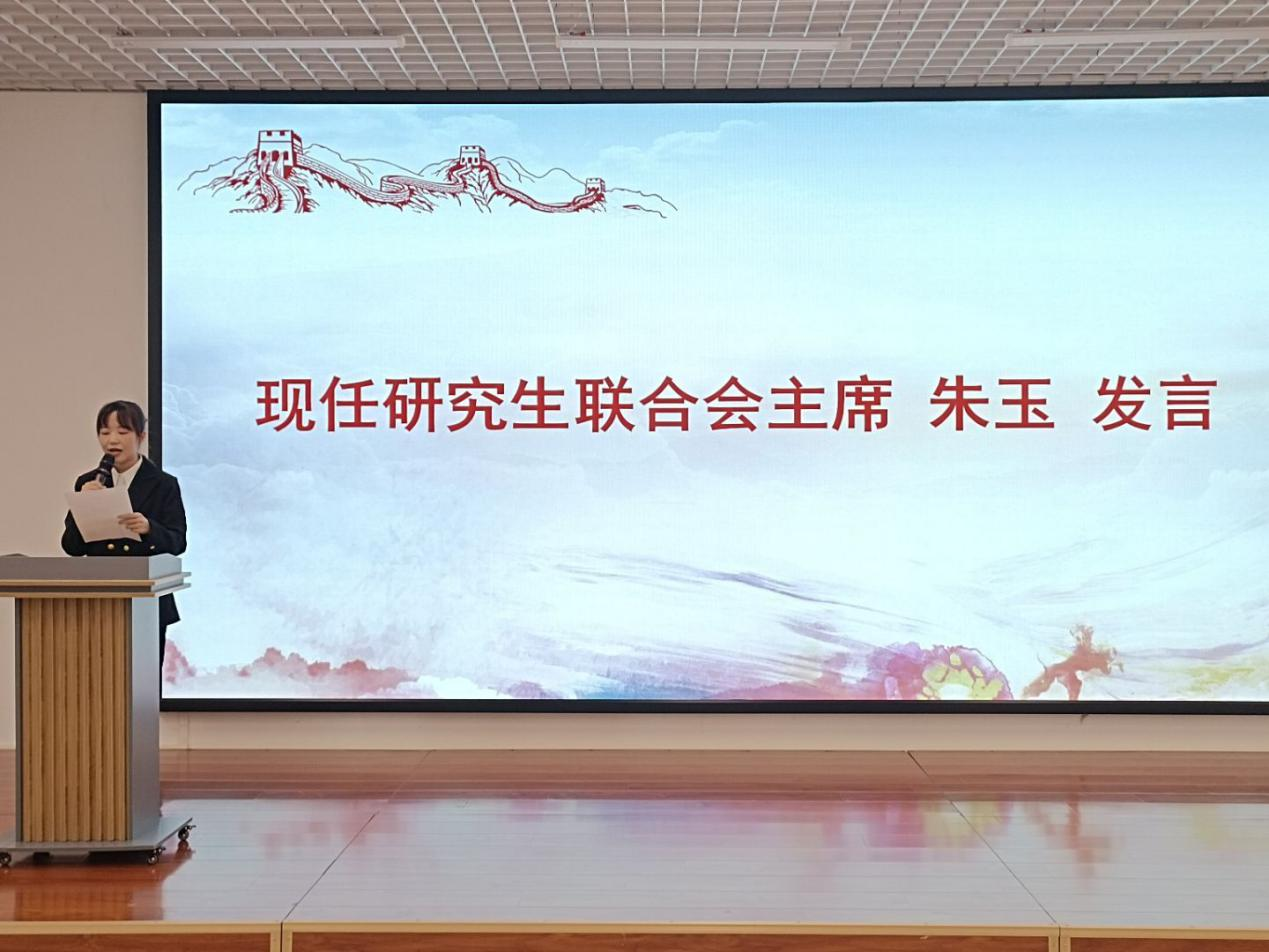 现任员工党建工作中心主任潘广妹、员工会主席孙阁鸿、研究生联合会主席朱玉分别发言,代表新一届员工组织向学院和全体同学作出承诺,表示将以更加饱满的热情迎接未知的挑战,带领新一届员工组织再创辉煌佳绩,书写出更加绚烂的篇章。