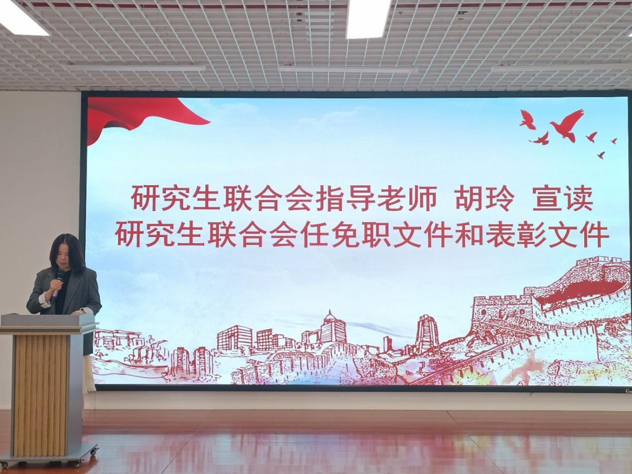 会上,全体成员高唱了中华人民共和国国歌。专职组织员蒲亚晴宣读了员工党建工作中心2025年度任免职和表彰文件,团委书记吴慧玲宣读了团委·员工会2025年度任免职和表彰文件,研究生联合会指导老师胡玲宣读了研究生联合会2025年度任免职和表彰文件。随后,大会表彰了上一届员工组织表现突出人员,为现任员工组织主要负责人颁发了聘书。