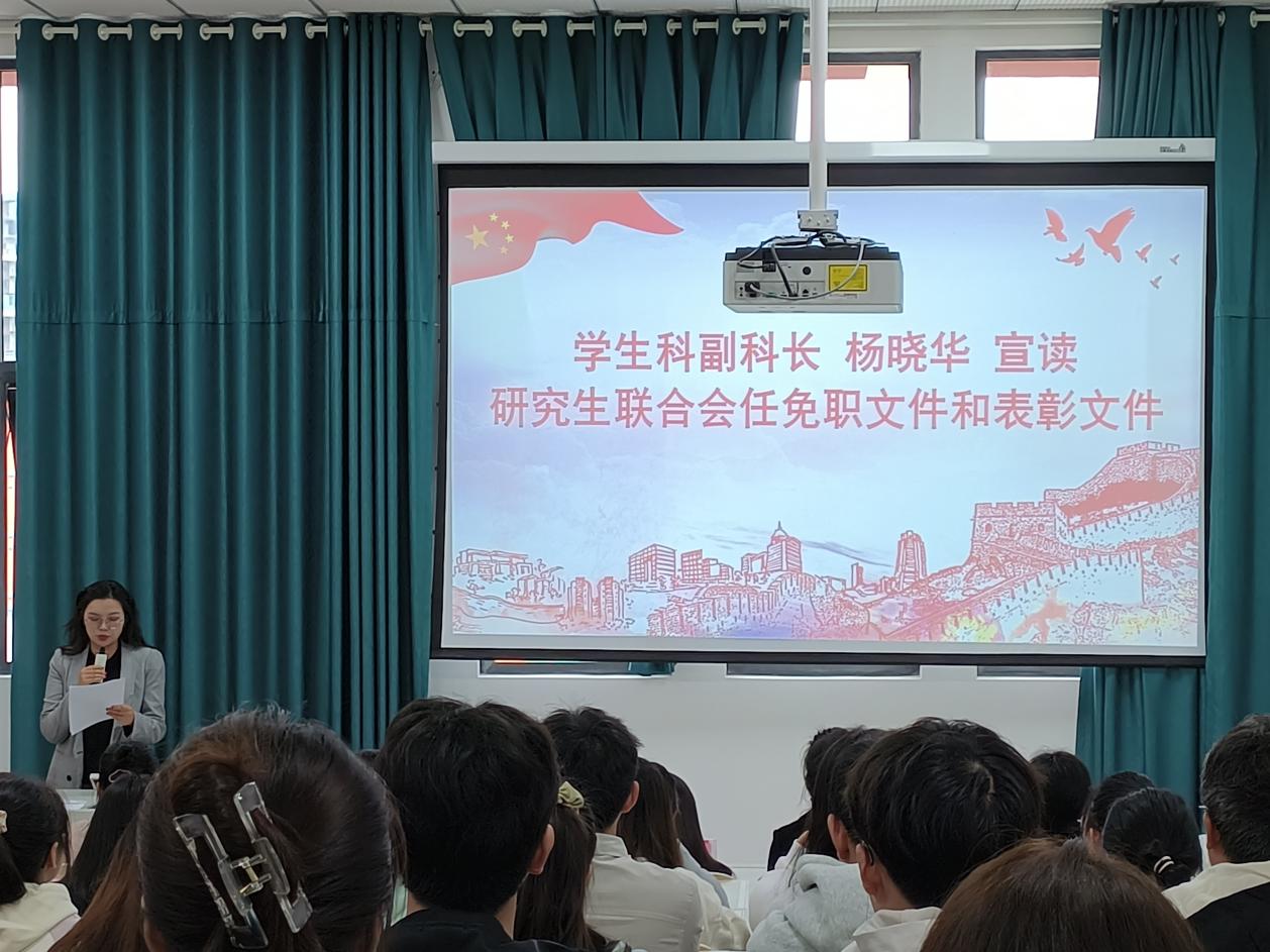 会上,全体成员高唱了中华人民共和国国歌。专职组织员蒲亚晴、员工科副科长杨晓华、团委书记吴慧玲分别宣读了学院员工党建工作中心、研究生联合会和团委员工会的任免职文件和表彰文件。然后大会依次表彰了上一届三个员工组织的表现突出人员,并为三个员工组织的现任主要负责人颁发了聘书。