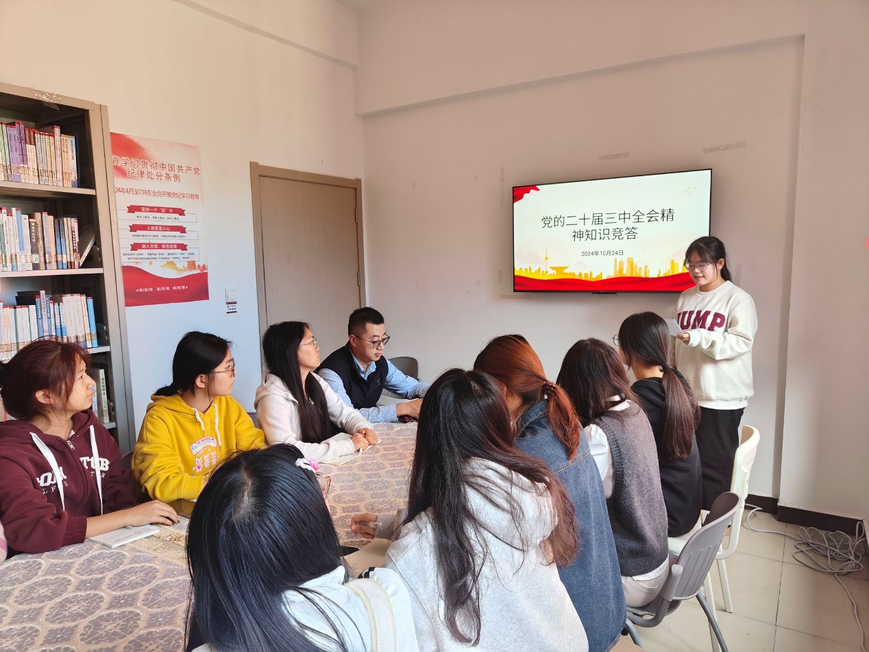为了积极响应党的号召,深入学习贯彻党的二十届三中全会精神,2024年10月24日,WilliamHill体育功能型团支部在文心苑三栋6楼WilliamHill体育一站式员工服务社区开展党的二十届三中全会知识竞答活动,WilliamHill体育团委·员工会指导老师王念祖老师、功能型团支部文心苑3栋第四团支部陈欣雨、赵垚垚、第五团支部王佳莉、第六团支部罗情、高娅婷以及团委全体成员参加了本次活动。