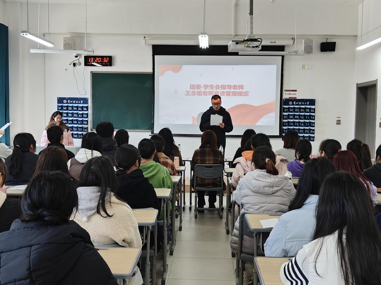 开班仪式伊始,全体成员齐声唱响庄严肃穆的中华人民共和国国歌,激昂的旋律激励着每一位团员青年心怀家国、砥砺奋进。紧接着,辅导员王念祖老师宣读团课培训班的相关培训规定和要求,引导学员们明确目标,规范自身行为,以严谨的态度参与本次团课学习。随后,学员代表袁溪代表全体学员发言,在发言中表达了对团课的高度重视和积极参与的决心,呼吁全体学员珍惜此次学习机会,将个人成长与强国梦想紧密结合,努力在团课中提升自我,展现新时代青年的责任与担当。最后,全体学员再次以饱满的热情高唱中国共产主义青年团团歌,嘹亮的歌声在会场回荡,展现出青年团员的蓬勃朝气与坚定信念,也为本次团课注入了新的活力。