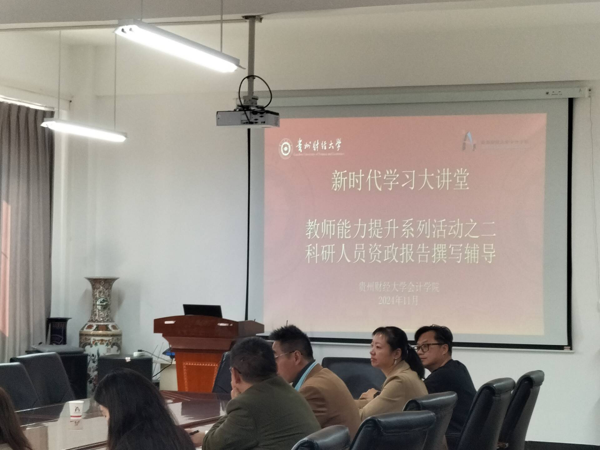 讲座伊始,潘文富副教授强调了调查研究和智力资源在国家发展中的重要性,随后详细介绍了资政考核指标,包括国家社科基金项目免于鉴定结项的条件,成果获得省部级以上奖项、领导批示或被重要刊物采用等都是考核的重要方面。