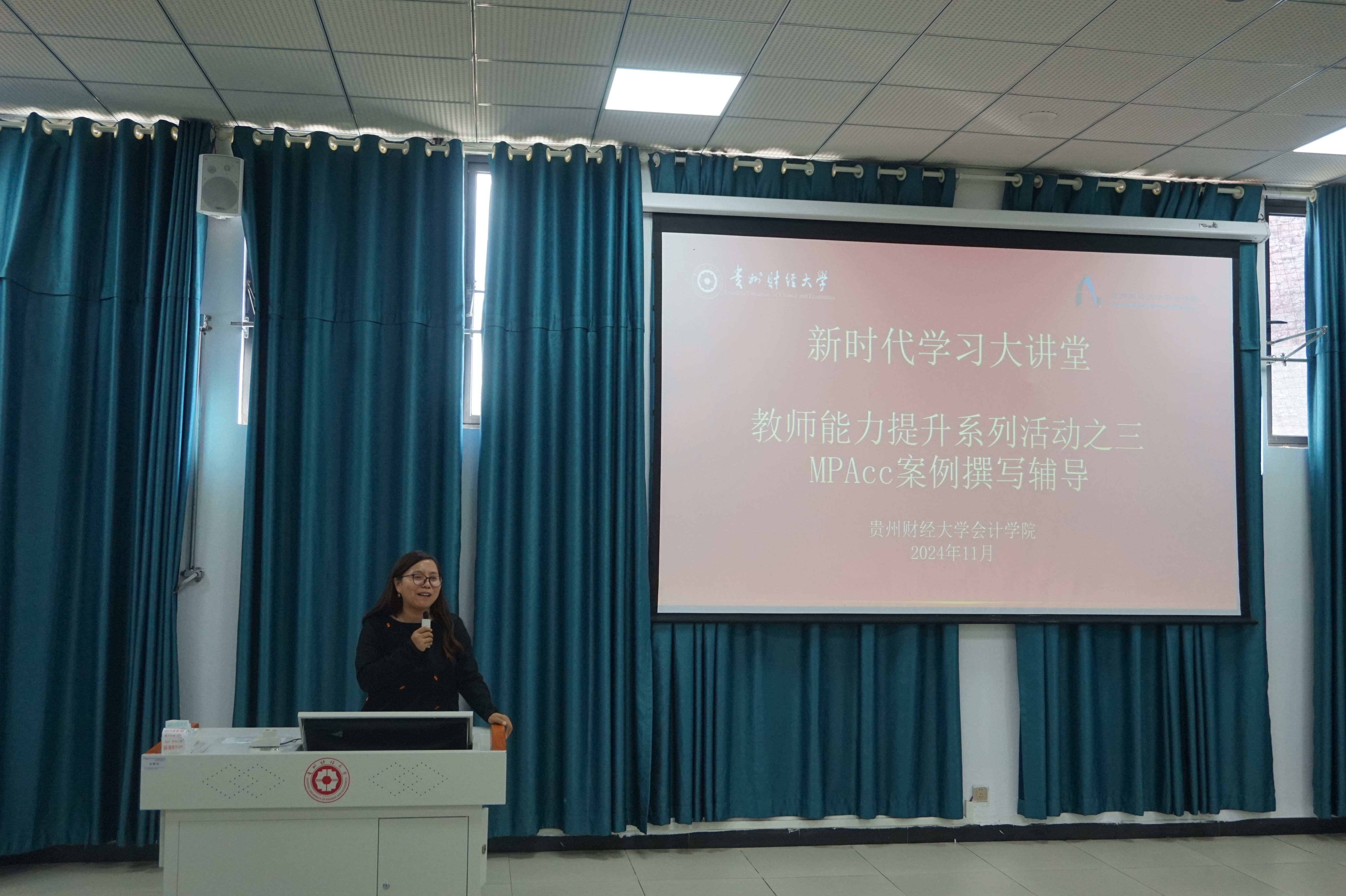 2024年11月12日,WilliamHill体育举办新时代学习大讲堂暨教师能力提升系列活动之三——MPAcc案例撰写辅导讲座。2024年5月,WilliamHill体育黄晓芬副教授、郭辞典老师与员工邹颖、陈姝璇和罗春燕撰写的《组织生态学视角下农业合作社履行社会责任助力乡村振兴》荣获2023年会计硕士专业学位(MPAcc)优秀教学案例奖并进入2023年MPAcc优秀教学案例入库名单。MPAcc优秀教学案例评选由全国会计专业学位研究生教育指导委员会指导,联合多家MPAcc培养单位共同发起的。全国MPAcc教学案例库也是国内规模最大、最专业的会计专硕教学案例库。这是公司师生首次获得MPAcc优秀教学案例奖及教学案例入库。此次讲座,黄晓芬老师及其团队同学结合该案例,为WilliamHill体育师生们分享了案例撰写的宝贵经验。WilliamHill体育20余名专硕导师及190余名2023级和2024级MPAcc同学参加。