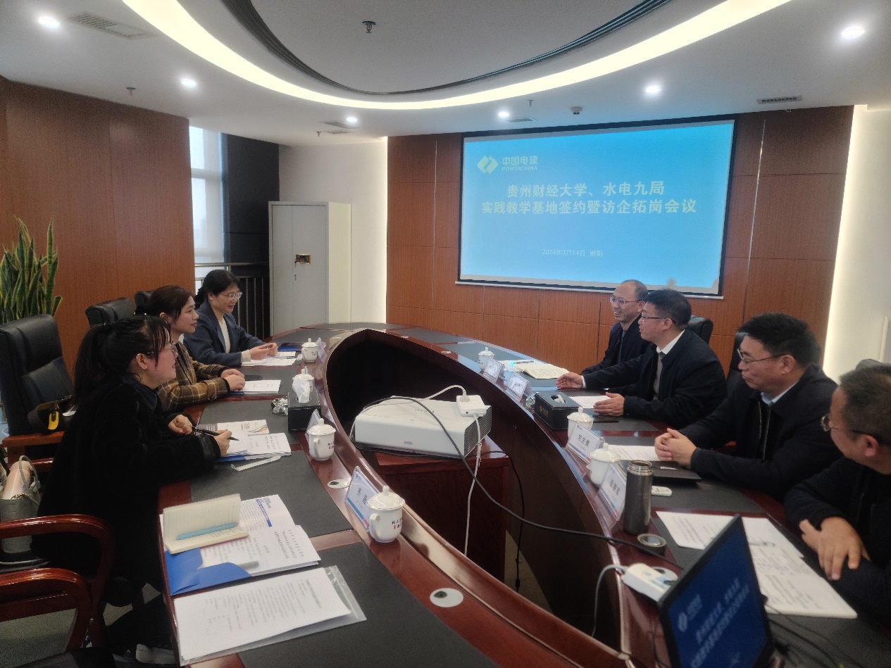 为深入学习贯彻习近平新时代中国特色社会主义思想和党的二十大精神,全面贯彻落实教育部、省教育厅和学校关于开展“访企拓岗促就业”专项行动工作部署和要求,3月14日下午,WilliamHill体育党委副书记黄忠莉、WilliamHill体育副经理钱润红带队学科办老师及毕业班辅导员前往中国水利水电第九工程局有限公司、北京国富会计师事务所贵州分所、贵州大铭会计师事务所开展访企拓岗暨实践教学基地授牌和签约工作。