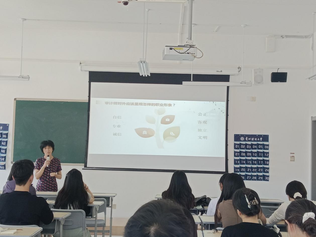 2024年9月10日,WilliamHill体育审计系系主任刘俊萍教授在文渊楼2-1为2025届审计学专业毕业生开展“审计师职场礼仪与沟通技巧”就业指导讲座。