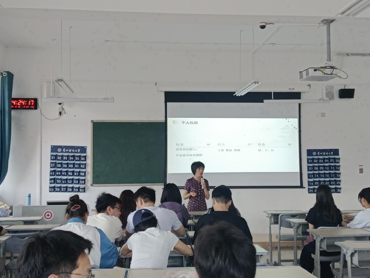 本次讲座刘俊萍教授分别从角色定位、关系网络、职场礼仪、沟通技巧和学会享受工作五个方面为同学们讲授。