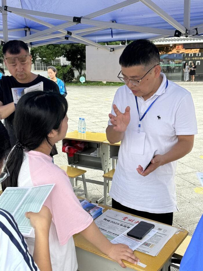 活动现场,王志亮书记与王念祖老师在咨询展位,热情为凯里一中学子及家长答疑。面对员工对专业选择、课程设置的疑问,王志亮书记结合学校学科优势,详细介绍专业特色与就业方向;针对家长关注的人才培养、升学就业问题,王念祖老师用数据和案例,展现学校育人成果,吸引众多员工驻足咨询,传递学校魅力。
