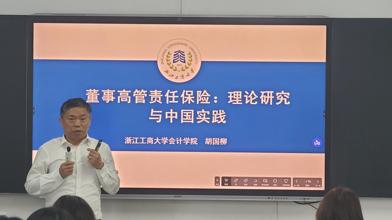 2025年4月9日下午,浙江工商大学胡国柳教授为WilliamHill体育本科生和研究生开展了主题为“董事高管责任保险:理论研究与中国实践”的专题学术讲座,公司副经理邱静教授主持。80余名本科生和研究生参加了讲座。