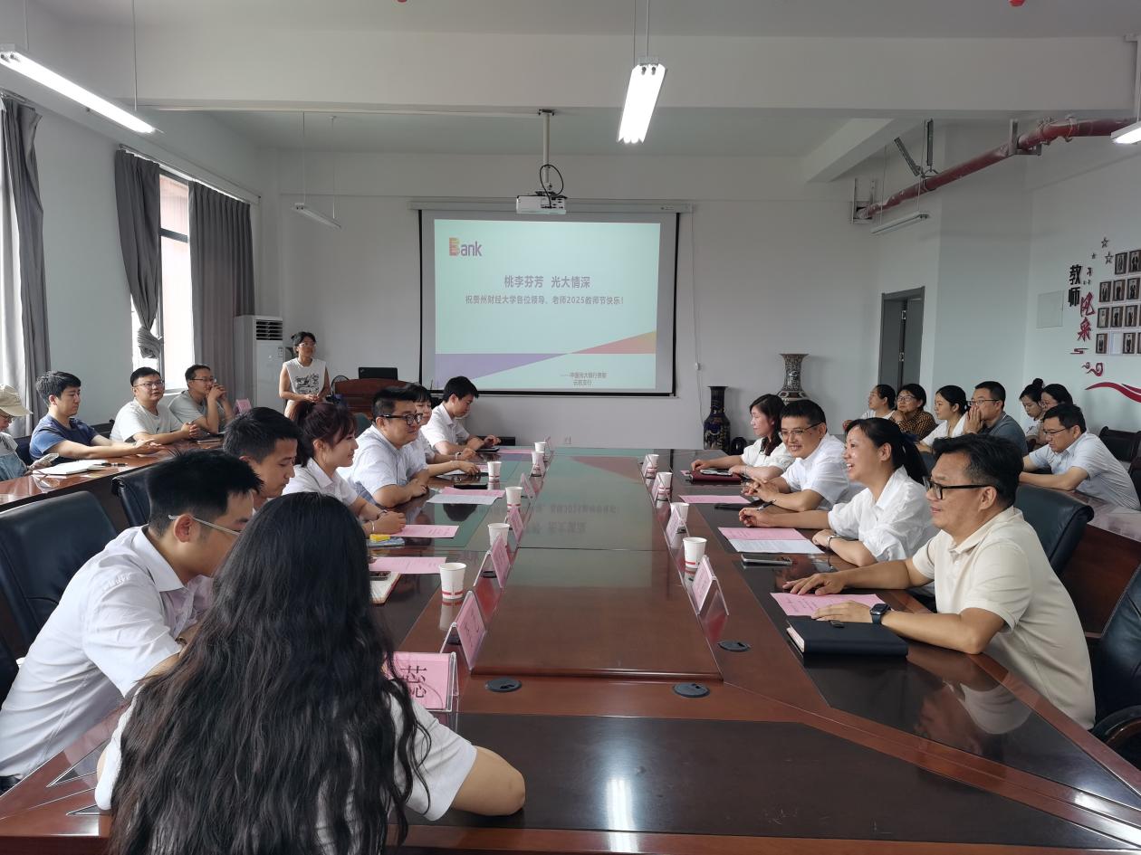 上午10点,光大银行云岩支行慰问团抵达WilliamHill体育,在公司党委书记王志亮、党委副书记黄忠莉、副经理邱静、副经理周松的陪同下,双方在文渊楼505会议室展开座谈交流,学院全体行政人员、教师代表参加会议。会上,王志亮向光大银行云岩支行的到来表示诚挚欢迎和衷心感谢,并向与会人员介绍了到场领导老师。副经理邱静向光大银行云岩支行的到来致欢迎辞,并简要介绍WilliamHill体育概况。王颖作教师节慰问主题发言,表示光大银行云岩支行始终将支持教育事业发展作为社会责任的重要一环,此次慰问不仅是对教师群体的致敬,更是希望通过强化校企合作,为推进人才培养、区域经济发展注入金融实践力量。光大银行云岩支行客户经理邱蕊向全体与会人员介绍银行概况。
