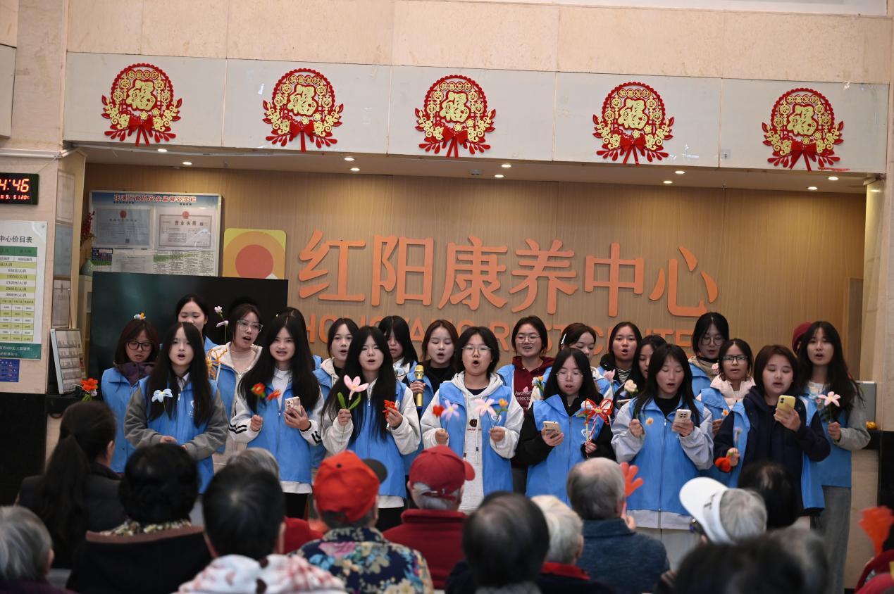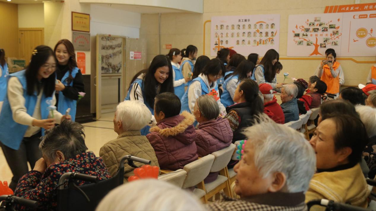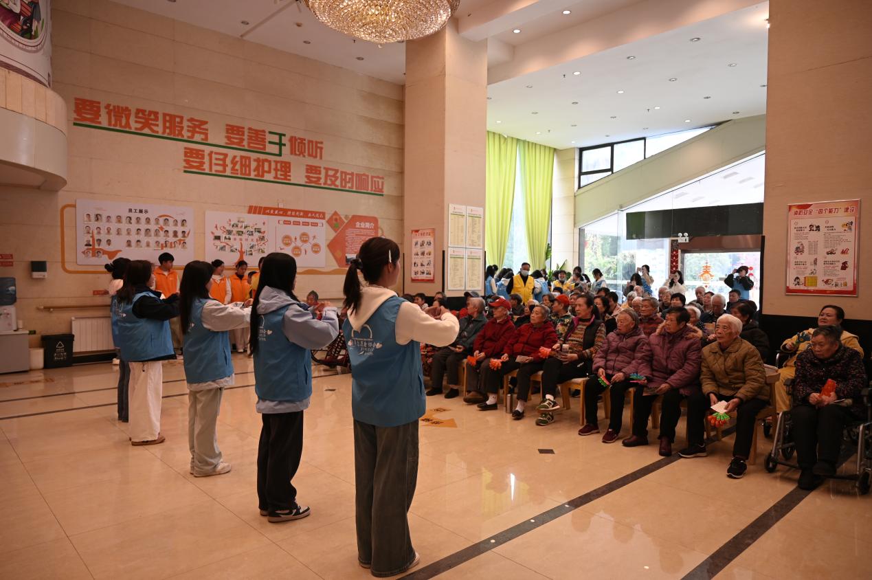 在活动现场,志愿者们依次走上舞台,展示他们精心策划的节目。悠扬的旋律和充满活力的舞蹈轮番上演,志愿者们以真挚的表演向老人们表达敬意。台下的老人们看得津津有味,不时随着节奏轻拍手掌,有些甚至情不自禁地跟着哼唱起来。现场掌声和欢笑声此起彼伏,温馨而热烈的气氛感染了在场的每一个人。活动尾声,志愿者们将他们事先精心制作的手工礼品逐一赠送给老人们。这些礼品虽不奢华,却满载着志愿者们的心意,老人们接过礼品时,脸上洋溢着满足的笑容。