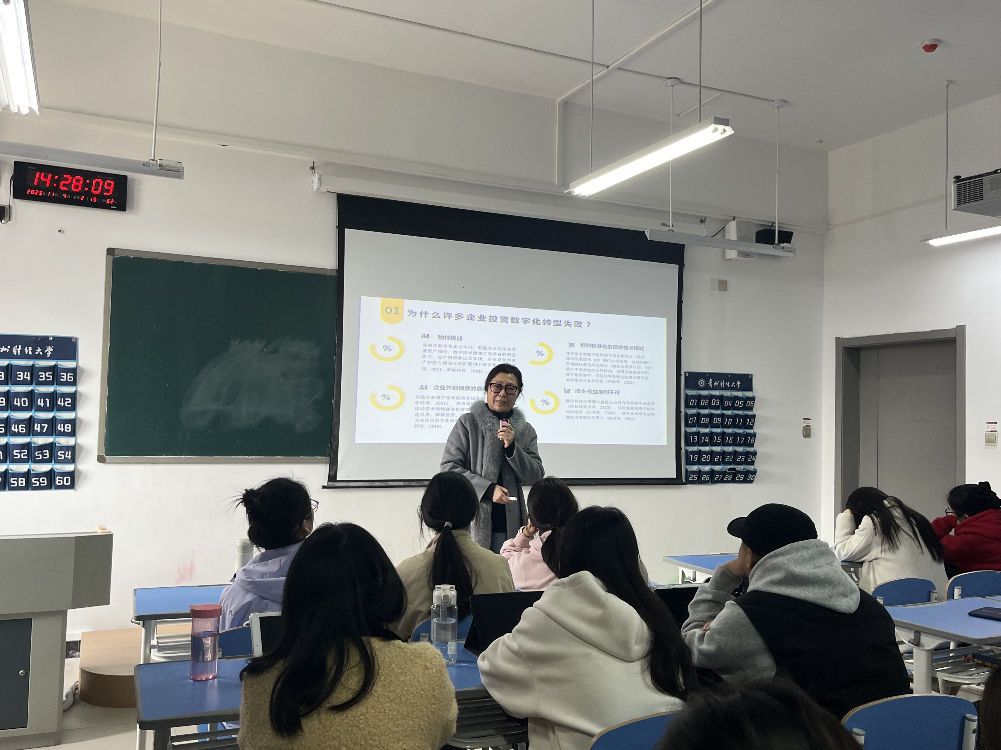 整场讲座内容翔实、逻辑严密,既有理论前瞻性,又紧扣实践前沿,不仅拓展了研究生对制造业数字化转型的认知边界,更强化了同学们将宏观政策、学术理论与产业现实相衔接的综合研究能力,为后续开展相关领域研究提供了重要启发。