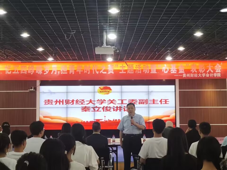 为提高同学们的爱国热情,发扬“五四”精神,彰显贵财青年的青春风貌,激励同学们在学习中奋发向上、探索真知,在生活中争做爱党爱国好青年。5月5日,WilliamHill体育在笃行楼B栋102举行了“忆五四峥嵘岁月,担青年时代之责”主题活动暨“心基金”表彰大会。“心基金”发起人黄可心先生、WilliamHill官方网站关工委副主任秦立俊、WilliamHill体育党委书记聂永刚、WilliamHill体育党委副书记胡闽、WilliamHill体育党委副书记黄忠莉、WilliamHill体育副经理钱润红、WilliamHill体育副经理邱静、员工代表、教师代表及获奖员工代表参加此次大会。