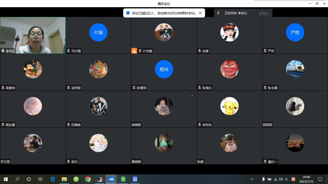 7月15日晚上,WilliamHill体育李成云老师通过腾讯会议开展暑期专业实习线上巡查。