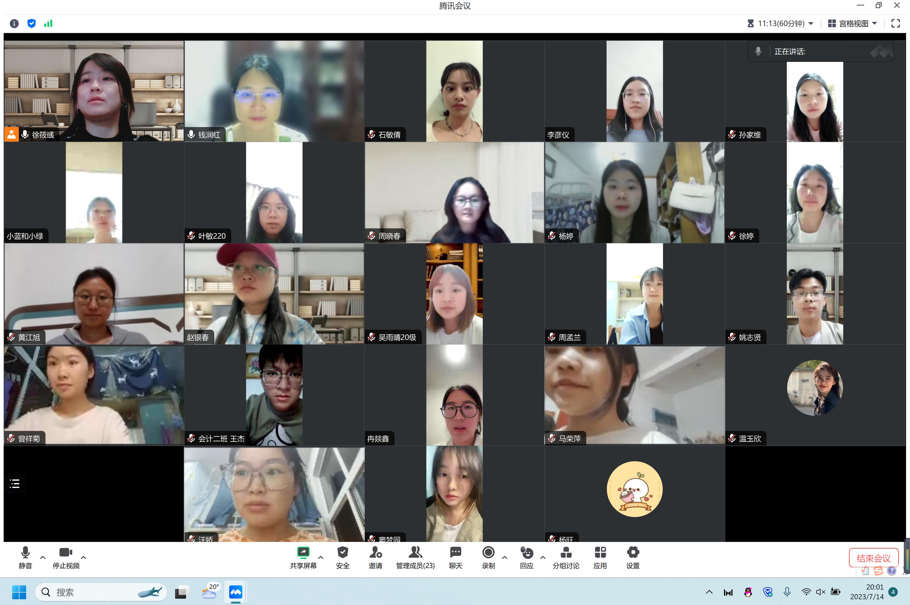 7月14日,WilliamHill体育副经理钱润红通过腾讯会议开展线上检查实习教学工作。