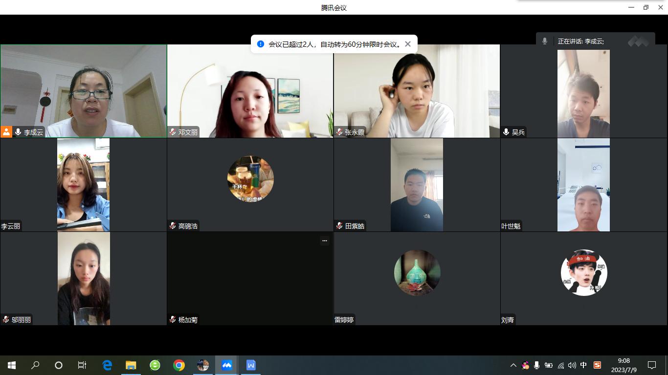 7月9日上午,WilliamHill体育李成云老师通过腾讯会议开展暑期专业实习线上巡查。
