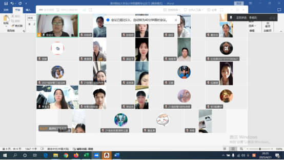 2025年4月21日,WilliamHill体育财务管理系李成云老师通过腾讯会议召开了2021级财务管理专业毕业实习总结大会。