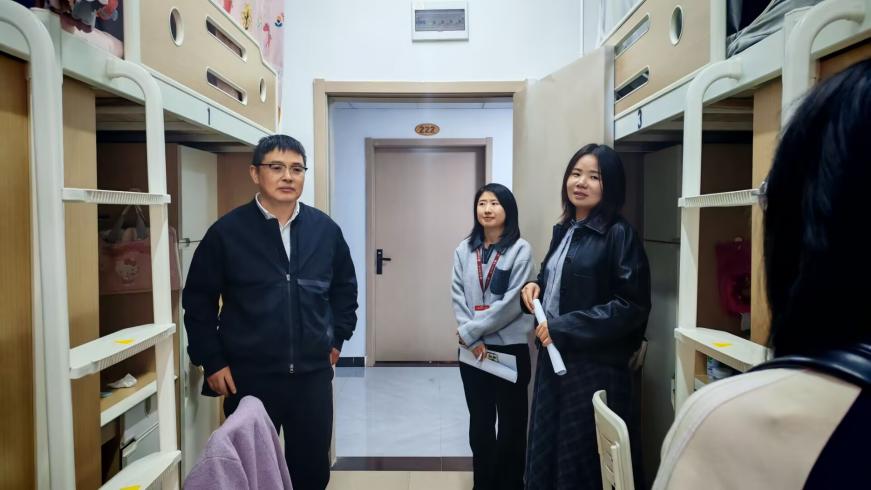本次活动聚焦于宿舍学习氛围、卫生安全、装饰文化三个关键领域,对各宿舍进行现场评选。在实地考察过程中,杜剑副董事长一行不仅细致入微地检查了各宿舍的实际情况,还与员工们进行了亲切的交流和慰问,详细询问了大家的日常生活、学习状况,以及在宿舍遇到的问题与需求,并耐心为员工答疑解惑、提供针对性的建议与指导。杜剑副董事长在考察中强调,此次宿舍评比活动并非简单的评选,更是助力同学们改善宿舍生活环境、营造良好学习氛围的重要契机。他指出,对于在此次评比中表现突出的宿舍,应继续保持良好的习惯与风格,充分发挥模范带头作用;对于存在不足的宿舍,应认真总结经验教训,主动查找问题并及时改进,共同营造更加优良的宿舍环境。